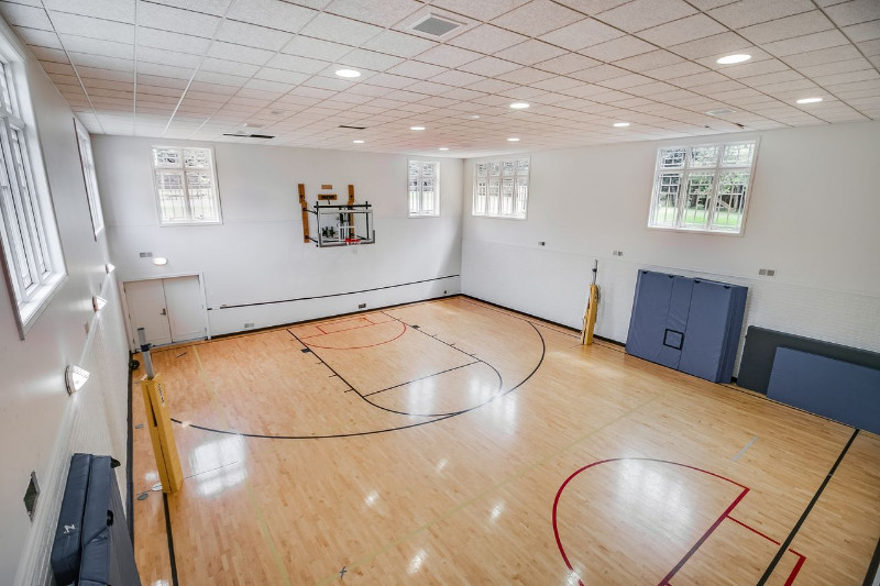 “It hits a lot of senses with the indoor basketball court, the outdoor pool and the outdoor tennis court. The family who currently owns the home is a very active family. This is like a playground for them. The gym is a two-story section of the house. The rest of the lower level features a game room and movie room. There’s also a full bathroom that feeds into the outdoor pool.”